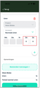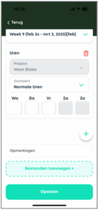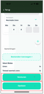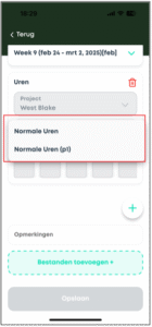 - Zie je een urensoort niet in de App, neem dan contact op met je accountmanager of de backoffice